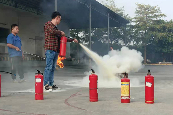 經(jīng)過(guò)理論的知識(shí)培訓(xùn),在接下來(lái)的實(shí)踐操作前,由安全責(zé)任人對(duì)常用干粉滅火器、二