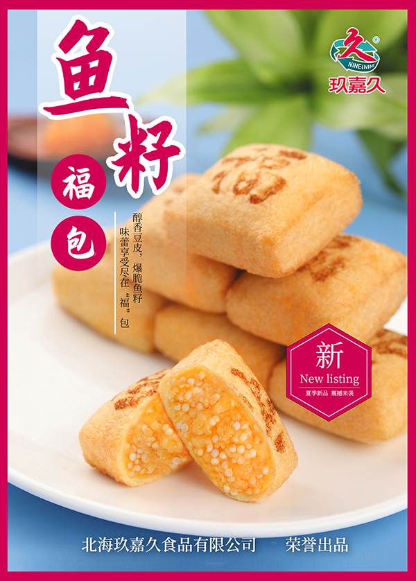 您看看,渾圓的魚籽填滿了整個(gè)福包,一口咬下,魚籽爆漿。