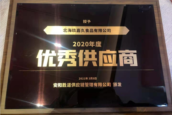 3月9日,巴莊2020年度供應(yīng)商答謝會(huì)傳來(lái)喜訊,玖嘉久榮獲“優(yōu)秀供應(yīng)商”獎(jiǎng)。